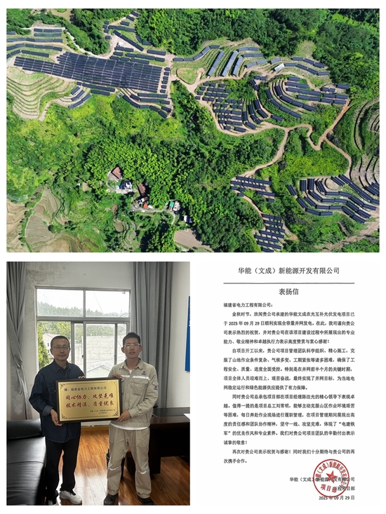 日前,公司多项目相继投产,以扎实的建设成果为国家能源战略推进和绿色低碳发展注入新动能,献礼祖国76周年华诞。 9月15日,福州福清虎溪T接城溪、溪头T接林虎脱开进塘头变110千伏线路成功送电,改工程新建线路总长6.248公里,采用单回、双回架空及电缆混合方式建设,建成后,有效完善了福清东部片区及洪宽工业园区的电网结构,显著提升区域供电可靠性与安全性。项目团队在施工过程中克服多项技术难点,严格执行安全管理要求,最终圆满达成送电目标。 9月29日,华能文成农光互补光伏发电项目实现全容量并网,该项目位于浙江省文成县,场址总面积约573.72亩,总装机容量23兆瓦,共使用N型双面双玻组件37176块。项目充分利用山地光照资源,采用“农光互补”模式,实现土地集约化利用,兼顾发电效益与生态保护,对推动能源结构转型、助力实现“双碳”目标具有积极意义。项目团队面对工期紧张、环境复杂等多重挑战,科学规划、精细管理,保障工程高质量如期投运。 9月29日,赤城县200兆瓦风储一体化创新示范工程实现全容量并网发电,标志着河北“风储”一体化能源体系建设取得突破性进展,也为京津冀地区绿色能源保供与河北省“双碳”目标推进再添新动能。该项目位于河北张家口赤城县,建设用地约1572亩,装机容量200兆瓦,以8回集电线路接入新建的220千伏升压站,以1回220千伏送出线路接入深能蚂蚁洼升压站。建成后,对推进区域生态保护及修复,促进绿色产业与生态保护融合发展,壮大县域经济,增加群众收入,助力乡村振兴具有重大意义。 项目的成功投产,不仅体现了公司在新能源和电网建设领域的专业能力,也为推进能源绿色转型、助力“双碳”目标实现贡献了重要力量。公司将以更昂扬的斗志、更务实的作风,匠心打造更多优质工程、精品工程,在祖国繁荣发展的征程中,持续贡献电建力量! |