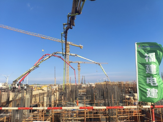 8月27日,福建省重点项目——泉惠石化工业区2×660兆瓦超超临界热电联产工程传来捷报,其核心建筑之一的2号汽轮发电机基础底板大体积混凝土浇筑历经20小时连续奋战,一次性圆满完成,标志着电厂主厂房基础建设取得决定性胜利,为后续汽轮机本体安装工作奠定坚实根基。 汽轮机作为电厂“心脏”,其基础底板是关键承载结构。此次浇筑的底板长53米、宽18米、厚3米,需混凝土2800余立方米,属典型大体积混凝土工程,面临一次性方量大、技术标准高、温控要求严等难题。 为确保此次浇筑质量,项目部前期组织多轮技术论证会,会同业主、设计、监理及商品混凝土供应方,精心编制专项施工及技术保障方案。通过采用低水化热水泥、优化骨料级配,从源头降低水化热;创新运用“斜向分层、循序推进”浇筑法,用3台泵车从两端推进,分层厚度控制在500mm内,避免冷缝;实行振捣“定人定岗定责”,质检员旁站标记,杜绝过振漏振;还调配5台泵车、38辆罐车,人员“两班倒”,领导带班全程监督。 8月26日5时浇筑正式启动。施工现场机器轰鸣、车辆穿梭、秩序井然。井然有序。建设者严格把控混凝土出厂质量、运输时间、坍落度及浇筑细节,最终于8月27日1时高质量完成浇筑,不仅实现节点目标,更展现了团队技术实力与执行力,获业主、监理高度认可,彰显福建电建在大型能源项目建设中的专业水平。 |